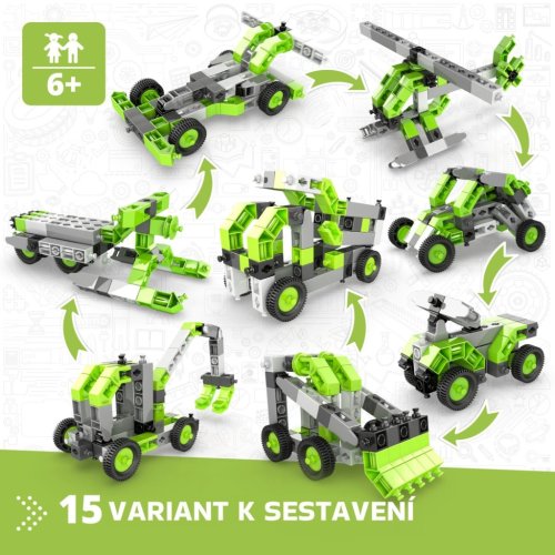 Stavebnice radu Engino Creative Builder podporujú tvorivosť a manuálnu zručnosť detí. Umožňujú ľahko a rýchlo pretvárať jeden model na druhý. Podľa priloženého návodu a mobilnej aplikácie krok za krokom ľahko vytvoríte 15 rôznych modelov. Interaktívna aplikácia Engino kidCAD® zobrazí modely v 3D, ktoré si môžete ľubovoľne otáčať, prezerať a upravovať. Kompatibilný s ostatnými druhmi stavebníc Engino. Vhodné od 6 rokov, vyrobené na Cypre EÚ.