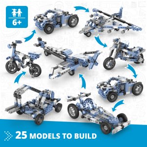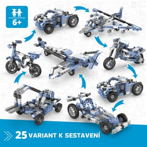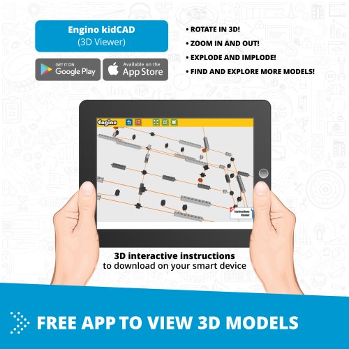 Stavebnica podporuje tvorivosť a manuálnu zručnosť detí Umožňuje ľahko a rýchlo pretvárať jeden model na druhý Podľa priloženého návodu a mobilnej aplikácie krok za krokom ľahko vytvoríte 20 rôznych modelov Aplikácia Engino kidCAD zobrazí modely v 3D, ktoré si môžete ľubovoľne otáčať, prezerať a upravovať Vyrobené na Cypre