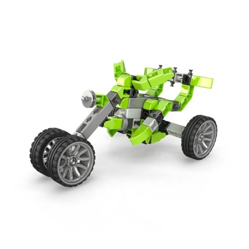 Modely v sade sú zostavené z plastových dielikov v kombinácii zelenej, šedej, čiernej a bielej farby, ktoré sú pevné a ľahko spojiteľné vďaka systému Snap-Fit. Medzi modelmi nájdeme napríklad terénne buggy, štvorkolku, helikoptéru, snežný skúter a ďalšie varianty, ktoré sú nielen vizuálne atraktívne, ale aj funkčné. Veľké kolesá zaisťujú stabilitu a možnosť jazdy po rôznych povrchoch, zatiaľ čo detaily ako predné svetlomety a aerodynamické tvary dodávajú modelom realistický vzhľad.