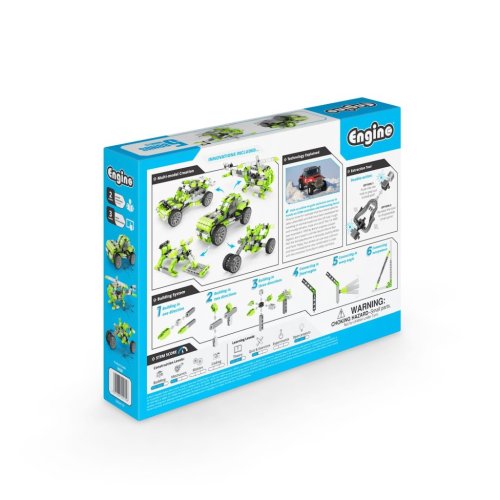 Balenie stavebnice je pevné a prehľadné, s ilustráciami všetkých piatich variant na prednej aj zadnej strane krabice, čo uľahčuje výber a inšpiráciu. Súčasťou balenia je aj návod na zostavenie a informácie o vzdelávacom prínose stavebnice. Výrobok je vyrobený na Cypre, v súlade s európskymi bezpečnostnými normami, a je určený pre deti staršie ako 9 rokov. Celkovo táto stavebnica ponúka nielen zábavu, ale aj rozvoj logického myslenia, manuálnej zručnosti a technického uvažovania.