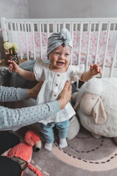 Detský turban s ozdobnou prednou časťou vo veľkosti pre deti od 12 do 16 mesiacov. Turban je vyrobený z bavlneného jersey, ktoré obsahuje 92% bavlny a 8% lycry. Látka je potlačená technológiou zelenej tlače s minimalizovanou spotrebou vody, energie a chemických látok. Ide o udržateľnú technológiu tlače s pozitívnou ekologickou bilanciou ako pri tradičných tlačových metódach. Všetky naše látky majú certifikáciu OEKO-TEX® Standard 100.