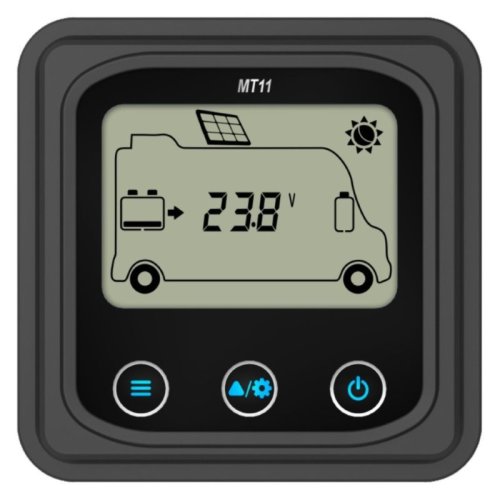 Externý displej radu MT je príslušenstvo, ktoré je kompatibilné s regulátormi radu DuoRacer . Môžete monitorovať prevádzkové dáta a pracovný stav regulátora pomocou LCD. Na externom displeji môžete prechádzať parametrami regulátora, nastavovať typ batérie a jednotky teploty a mazať vygenerovanú energiu . Je vhodný pre RV, karavany, lode atď.