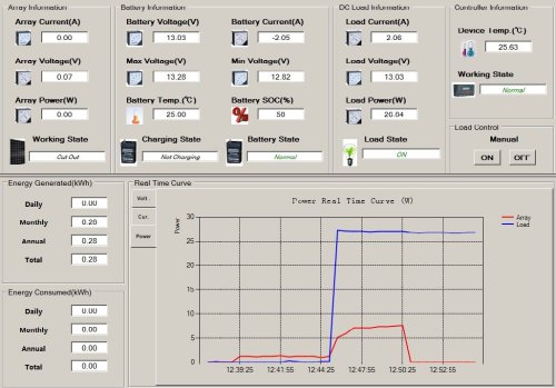Vďaka tomuto prevodníku je možné kontrolovať tok energie zo solárneho panelu priamo na obrazovke monitora. Ďalej je možné zobrazovať napätie batérie, solárneho panelu alebo teplotu. Výhoda tohto riešenia spočíva okrem iného v možnosti všetky tieto informácie ukladať do súboru s možnosťou ďalšieho spracovania (tvorba grafov a pod.).