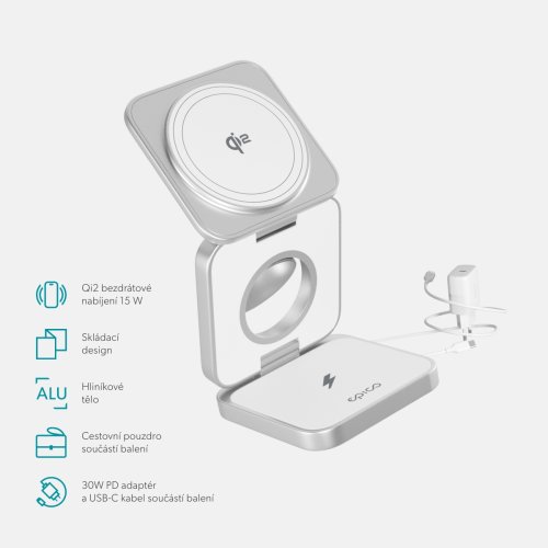 Bezdrôtová nabíjačka Epico Qi2 3in1 Mag+ nabíjačka biela