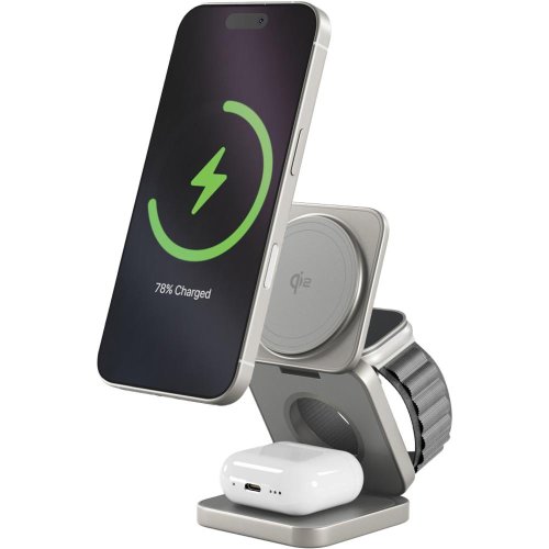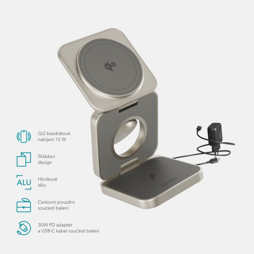 Bezdrôtová nabíjačka Epico Qi2 3in1 Mag+ nabíjačka titánová