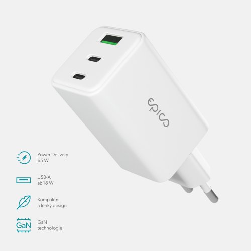 Kompaktná nabíjačka pre všetky vaše zariadenia Rýchle nabíjanie 65 W: Skvelé pre rýchle a efektívne nabíjanie telefónov, tabletov, notebookov a ďalších náročnejších zariadení. Tri porty: Dva USB-C porty s technológiou Power Delivery pre rýchlejšie nabíjanie a jeden USB-A umožňujú nabíjať až tri zariadenia súčasne. Technológia GaN: Menšie, chladnejšie a úspornejšie pre pohodlné každodenné použitie. Kompaktný dizajn: Praktická na doma, do kancelárie aj na cesty. Vstavané bezpečnostné prvky: Spoľahlivé nabíjanie s ochranou proti skratu, prepätiu, preťaženiu a prehriatiu.