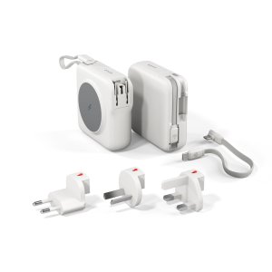 Vstavaná US zástrčka spolu s priloženými adaptérmi pre EÚ, UK a AU zaistí kompatibilitu prakticky kdekoľvek na svete bez nutnosti prenášať viac rôznych nabíjačiek. Pri zapojení do siete poskytuje výkon až 30 W cez USB-C av režime powerbanky umožňuje káblové nabíjanie výkonom až 20 W. Súčasťou balenia sú dva opletené USB-C káble – vstavaný a odnímateľný oba podporujúce rýchle nabíjanie až 60 W. Prehľadný LED indikátor navyše zobrazuje aktuálnu kapacitu batérie.