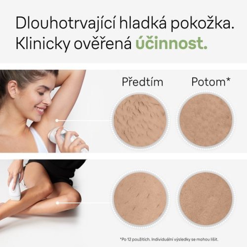 Až 1 rok dokonale hladkej pokožky s IPL epilátorom Braun, ktorý prináša viditeľné výsledky už po 3 použitiach. Vďaka inteligentnému snímaču Skin Pro (SensoAdapt™) prístroj automaticky prispôsobuje intenzitu zábleskov odtieňa vašej pokožky, čím optimalizuje epiláciu na rôznych častiach tela. Až 100 zábleskov za minútu zaistí rýchle a precízne ošetrenie s minimom vynechaných miest. Jemný režim redukuje intenzitu svetla pre šetrnú epiláciu citlivých oblastí, ako je tvár, podpazušie alebo oblasť bikín.