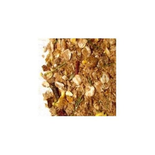 Pšeničné otruby 40 %, kukurica 13,8 %, pšeničné vločky 10 %, jablčné úsušky10 %, ľanové semienko 9 %, melasa 4,5 %, olej z pestreca 2,5 %, ovsené vločky 2,5 %, droždie 2 %, chlorid sodný 1,4 %, sekaný tymián 1 %, sekaná petržlenová vňať 1 %, uhličitan vápenatý 0,5 %, monokalciumfosfát 0,1 %, oxid horečnatý 0,1 %, laktóza 0,1 %.