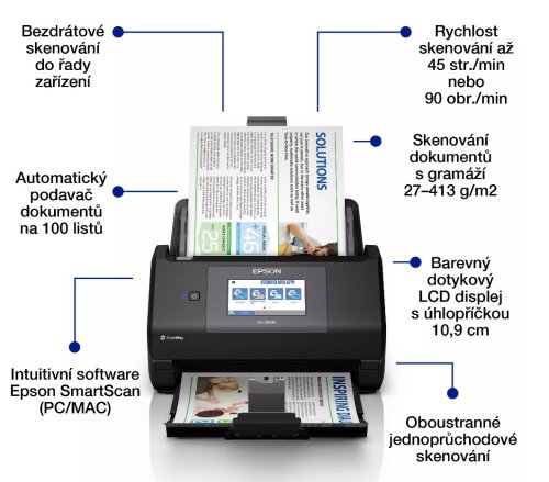 Kapacita papiera ADF: 100 listov Gramáž papiera ADF: Automatické podávanie: 27 - 413 g/m2 Duplexné skenovanie: Áno
