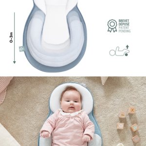 Ergonomický vankúš zaručujúci perfektnú polohu pre novorodencov: ideálna poloha chrbátik, hlavičky a zdvihnutých nožičiek.