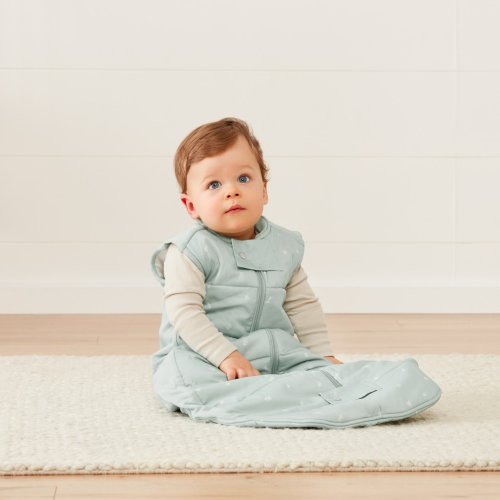 Vak na spanie Sheeting 2,5 TOG je ideálny na udržanie tepla pre dieťa počas noci v miestnostiach s teplotou 17–23 °C. Hodnota 2,5 TOG znamená, že pri používaní tohto výrobku nie sú potrebné ďalšie prikrývky v postieľke, čo z neho robí možnosť bezpečného spánku. Rodičia si môžu byť istí, že priedušné organické prírodné vlákna pomáhajú regulovať teplotu dieťaťa a zabraňujú prehriatiu. Rodičia sa môžu riadiť izbovým teplomerom ZADARMO a príručkou What to Wear (Čo si obliecť), ktoré sú súčasťou výrobku, a vhodne pod ne navrstvovať vrstvy, aby ich dieťa zostalo v teple.
