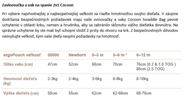 Pokiaľ sa vášmu novorodencovi nepáči zavinutie, je bezpečné spať v zavinovačke_vaku od začiatku s natiahnutými rukami. Vždy uspávajte svoje bábätko v bezpečnom prostredí na spanie.