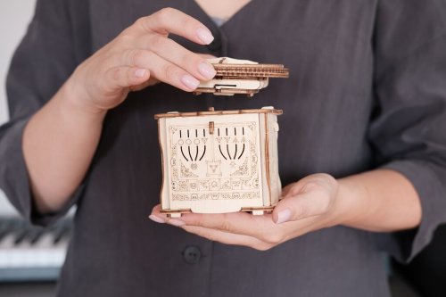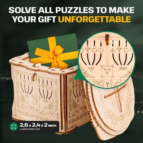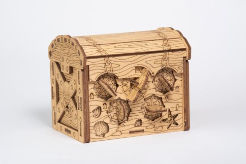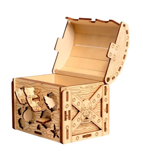 Už žiadny nudný baliaci papier! Venujte darček s prekvapením a zažite strhujúcu zábavu vďaka Pirate´s Treasure Chest box. Chcete darovať peniaze, poukážku alebo iný drobný darček? A chcete odovzdať darček skutočne originálnym spôsobom? Spojte prekvapenie so skúškou dômyslu a trpezlivosti. S boxom v tvare pirátskej truhlice v inovatívnom dizajne vyrobeným z brezového dreva neurobíte chybu. Box je tiež ideálny na uloženie vecí, ktoré sú vášmu srdcu drahé. Elegantný tvar ho premieňa na umelecké dielo a stane sa tak ozdobou každého interiéru. Nenechajte si ujsť vzrušujúci zážitok z hry, množstvo fascinujúcich hádaniek a nové jedinečné mechanizmy. A nemusíte sa hrať sami, zapojte celú rodinu alebo priateľov. Box je starostlivo vyrobený zo 100% prírodných materiálov a všetky jeho časti boli presne vyrezané najlepšou laserovou technológiou. Hlavné vlastnosti: vyrobené zo 100% prírodných materiálov exkluzívny dizajn precízne vyrezané najlepšou laserovou technológiou použiteľné opakovane vhodné ako kreatívny darček s prekvapením alebo ako krabička na cennosti vyrobené v EÚ