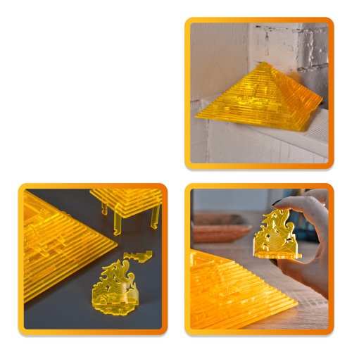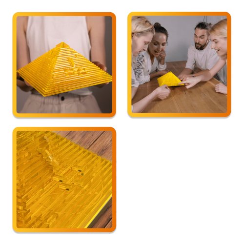 Po tisíce rokov strážili egyptskí učenci a kňazi pokladnicu poznania, zdroj skutočnej moci. Ukryli sa hlboko v starobylej pyramíde plnej magických pascí a hádaniek, aby odradili nepozvaných hostí a strážili tajomstvo pred nepovolanými. Ani faraóni, ani najväčší vzdelanci perzskej ríše nedokázali preniknúť dovnútra a odhaliť posvätnú múdrosť Egypťanov. Máte odvahu prekonať všetky nástrahy starovekých architektov a vyzdvihnúť stratené znalosti? Využite jedinečnú príležitosť a vydajte sa na vzrušujúce dobrodružstvo, rozlúštite záhadu pyramídy a vyzdvihnite poklady zo siene vedenia! ∗★∗ Hlavolamy Escapewelt novo v luxusnom prevedení z priehľadného farebného akrylátu! Vysoko kvalitný a odolný materiál premení prepracované puzzle na nevšedný a žiarivý šperk. Zakúste atmosféru únikových hier s originálnymi scenármi a hádankami u Vás doma! Každý hlavolam ukrýva malú priehradku, ktorú môžete kreatívne využiť na úschovu vodítka vo vlastnej dobrodružnej hre, alebo spestrenie zážitku z drobného darčeka. Súčasťou každého balenia je jednoduchý obrázkový návod, ktorý obsahuje aj QR kód vedúci na stránku s nápovedou. Rébus má vždy jedno riešenie, kvalitným prevedením je ale predurčený na ďalšie použitie, neváhajte ním preto ďalej obdarovať a vyzvať svojich priateľov, alebo členov rodiny. Hlavné vlastnosti:luxusné prevedenie z číreho akryláturozmery vnútornej priehradky 5×5×5 cmvysoká obtiažnosť riešenievyrobené v EU
