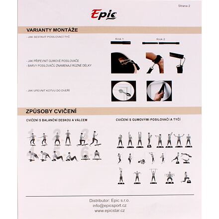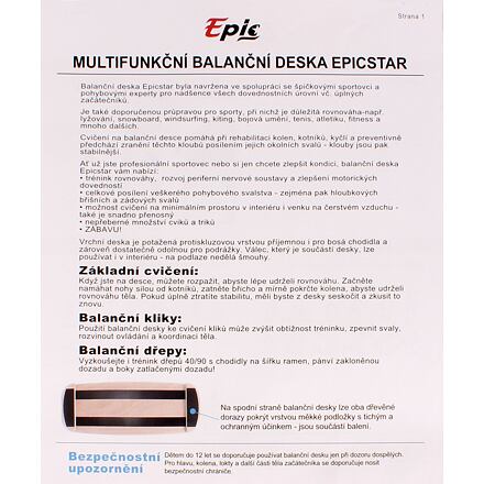 Multifunkčná balančná doska Epicstar je výsledkom spolupráce s elitnými športovcami a odborníkmi na pohyb. Ideálne pre všetkých, od úplných začiatočníkov až po skúsených športovcov. Je to výborná pomôcka pre športy, kde je kľúčová rovnováha – napr. lyžovanie, snowboard, windsurfing, kiting, bojové umenia, tenis, atletika, fitness a mnoho ďalších . Cvičenie na balančnej doske Epicstar pomáha pri rehabilitácii kolien, členkov, bedier a preventívne predchádza zraneniu týchto kĺbov posilnením ich okolitých svalov - kĺby sú potom stabilnejšie. Vrchná doska balančnej dosky Epicstar je potiahnutá protišmykovou vrstvou príjemnou pre bosé chodidlá a zároveň dostatočne odolnou pre podrážky. Valec balančnej dosky Epicstar je možné používať aj v interiéri, bez nutnosti použitia koberca. Pre vyššiu bezpečnosť je doska zospodu vybavená koncovými zarážkami, na ktoré môžete nalepiť samolepiace mäkké podložky pre zvýšenú ochranu podlahy. Súčasťou balenia je posilňovacia tyč s gumovými expandermi, kotva do dverí a pútko na členkové k. Ide o modernú posilňovaciu pomôcku umožňujúcu systematické posilňovanie všetkých svalových partií. Posilňovacie expandéry sú skvelou univerzálnou pomôckou na posilnenie a pretiahnutie svalov a na zvýšenie výkonu pri ťahových cvičení. Gumu je možné využívať ako k silovému tréningu s vlastnou váhou, tak aj k vytrvalostnému tréningu. Tento set ponúka tri páry expandérov s rôznymi stupňami odporu. Dverná kotva rozširuje použitie odporových gúm. Cvičiť tak môžete skoro rovnako ako na závesnom systéme. Valček kotvy pretiahnete do dverí tak, aby sa dvere ťahom zatvárali, popr. ho môžete umiestniť k dvernému pántu. Do pútka valca upnete daný expander pomocou karabíny, ktorá je súčasťou balenia. Vďaka tomu môžete posilňovať každú stranu tela zvlášť a lepšie sa tak sústredíte na správne prevedenie cvikov. - súčasťou balenia je vak pre ľahké prenášanie a uskladnenie - maximálna nosnosť: 150 kg - rozmer dosky: 73,5 x 26,5/28,5 x 2 cm (dĺžka x šírka na kraji/šírka uprostred x hrúbka) - rozmer valca: 10,5 cm x 41,5 cm (priemer x dĺžka) - hmotnosť dosky: 2,35 kg - hmotnosť valca: 1,2 kg - valec opatrený mäkkým filcom - nepotrebuje podložku na tvrdom povrchu - na spodnej strane balančnej dosky je možné oba drevené dorazy pokryť vrstvou mäkkej podložky s tichým a ochranným účinkom - sú súčasťou balenia - gumové expandery sú farebne rozlíšené podľa veľkosti odporu - dverná kotva je malá, ľahká pomôcka na uchytenie cvičebných expanderov - pútko na uchytenie na dolnú alebo hornú končatinu - 9+
