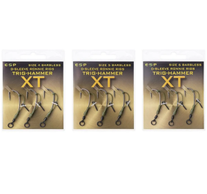 Tieto nadväzce poskytujú mimoriadne účinnú prezentáciu a sú zostavované v našich vlastných továrňach. Sú vybavené návlekom ESP D-Sleeve, ktorý zaisťuje kľúčové oddelenie medzi háčikom a plávajúcou nástrahou (pop-up), čo vedie k lepšiemu zaseknutiu a spoľahlivejšiemu držaniu ryby. Kovová skrutka na nástrahu na D-Sleeve umožňuje rýchle a ľahké uchytenie pop-up nástrahy. Tieto náväzce obsahujú háčiky Trig-Hammer XT, ktoré sú výnimočne pevné, s extrémne ostrými a odolnými ihlovými hrotmi a hladkým PTFE povrchom. Háčik je pripevnený k rýchlovýmennému matne čiernemu obratlíku Ronnie Ring. Dostupné vo veľkostiach 4, 5 a 6, vo variante s protihrotom aj bez protihrotu, v balení po troch kusoch.