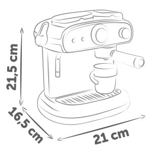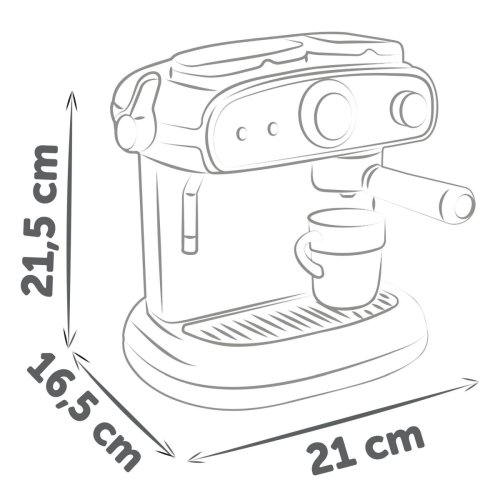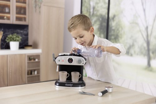 Dobře vybavený nejmodernější kávovar se zvukovými i světelnými efekty, funguje jako opravdový kávovar. Součástí je 6 doplňků: 2x kouzelný hrnek, který změní barvu na kávovou při kontaktu se studenou vodou, 2 lžičky a dvě kapsle na kávu. Rozměry kávovaru (DxŠxV): 16,5 x 21 x 21,5 cm.