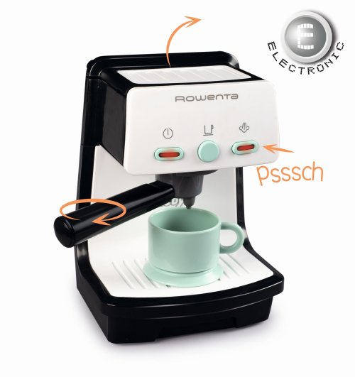 Verná replika moderného stroja na espresso dodáva espresso v správnom štýle. Realistické funkcie, ako je podsvietený spínač a rôzne zvukové efekty, zaisťujú skutočný baristický vkus. Portafilter je možné vybrať ako pri skutočnom kávovare na espresso. Súčasťou je šálka na espresso. Rozmery (DxŠxV): 10,5 x 10,4 x 18 cm.