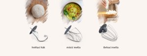 Neoddeliteľnou súčasťou kuchynského robota ETA Gratus EVO Smart je aj kvalitné príslušenstvo. Misiaca metla je ideálna pre dokonalé premiešanie ľahkých ciest na torty, piškóty alebo napríklad lievance. Šľahaciu metlu využijete na vyšľahanie šľahačky, bielkového snehu aj na prípravu nátierok. Hnetací hák vám uľahčí prípravu kysnutých a hutnejších ciest a poradí si tak s chlebom aj poriadnou vianočkou.