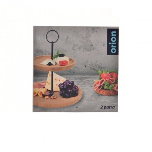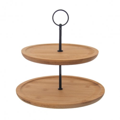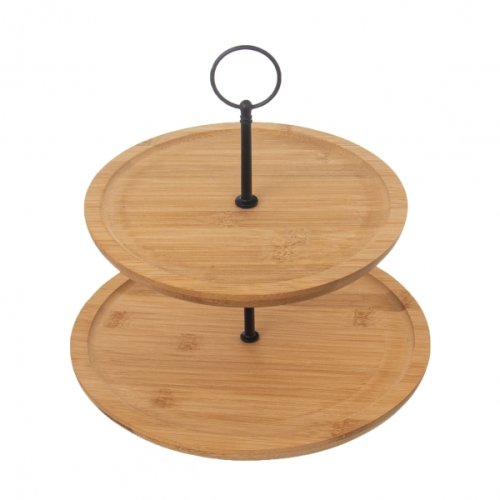 Drevený dvojposchodový etažér na servírovanie či vystavenie rôznych pokrmov je najčastejšie využívaný ako stojan na vianočné pečivo. Je vhodný nielen na pečivo, tortičky, zákusky, muffiny, makrónky, ale aj ovocie alebo slané chuťovky. Poctivé prevedenie z prírodného bambusového dreva so stredovou oporou v čiernej farbe. Premyslená stredová os je v hornom bode zakončená malou rukoväťou pre pohodlné prenášanie stojana.