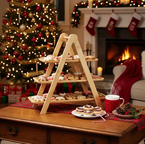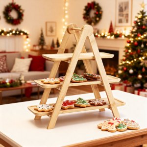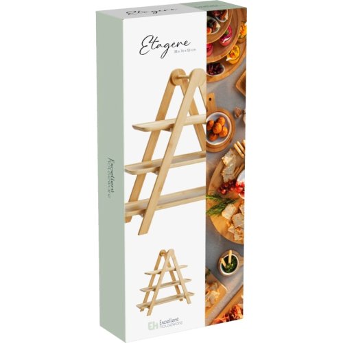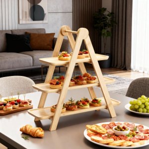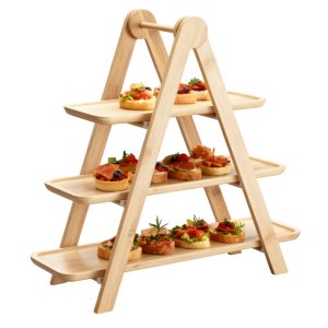 Elegantný trojposchodový etažér na servírovanie, vyrobený z kvalitného bambusu s pevnými PV klipmi. Ideálne na podávanie dezertov, ovocia, syrov či slaných pochúťok. Vďaka prírodnému prevedeniu a stabilnej konštrukcii sa hodí ako na každodenné stolovanie, tak na slávnostné príležitosti.