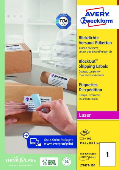 • Etikety na zásielky z extra silného materiálu. Sú vyrobené s technológiou BlockOut™ - úplne nepriehlené - kompletne zakryjú starý text alebo etiketu