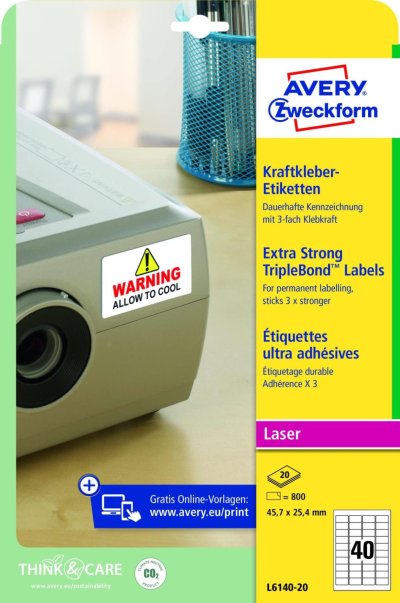 Etikety s ochranou Avery, 45,7 x 25,4 mm, biele