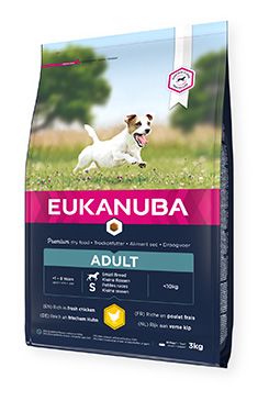 Nová EUKANUBA vylepšená receptúra so zameraním na konkrétnu fázu života - pre malých aktívnych dospelých psov od 1 roku do 8 rokov - poskytuje na mieru upravenú výživu na podporu štíhlych svalov a vyvážený príjem energie, ktoré zaistia optimálny telesný stav vášho dospelého psa. Naša jedinečná na mieru upravená receptúra pre malých dospelých psov obsahuje zmes vlákniny, prebiotiká FOS a repnej dužiny pre podporu zdravého zažívania, juku, ktorá pomáha znížiť zápach zo stolice, prirodzený zdroj mastných kyselín omega-6 a omega-3 pre zdravú kožu a srsť, L-karnitín, ktorý pomáha metabo. Naše unikátne granule v tvare šesťuholníka s prídavkom DentaDefense taktiež pomáhajú s udržiavaním čistých a zdravých zubov. Pokročilá výživa pre malé dospelé psy so zameraním na podporu optimálneho telesného stavu a celoživotnú pohodu.