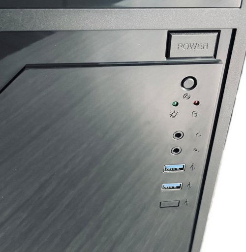 Konektory na prednom paneli: 2× USB 3.0, 1× slúchadlový výstup, 1× vstup pre mikrofón