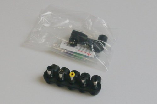 Balenie obsahuje napájací adaptér s pripojeným káblom zakončeným autozástrčkou, sadu 7 výmenných koncoviek pre rôzne typy notebookov a 5 nastavovacích odporov pre voľbu správneho výstupného napätia.