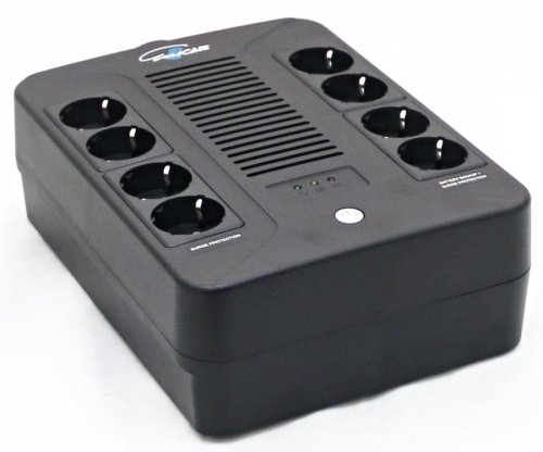Záložný zdroj kompaktnej veľkosti, prispôsobený aj na zavesenie na stenu . Na čelnom paneli nájdeme vypínač ON/OFF a indikačnú LED.
