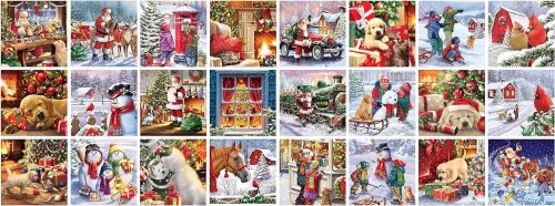 kalendár obsahuje 24 rôznych puzzle obrázkov s vianočným motívom každé puzzle má 50 dielikov obrázky majú štvorcový tvar a rozmer jedného puzzle je 12,5 x 12,5 cm kalendár obsahuje 24 šuplíkov a je znovu použiteľný (na budúci rok si s jeho pomocou môžete vytvoriť originálny adventný kalendár naplnený drobnosťami alebo niečím sladkým) rozmer priehradky je cca 6,5 x 6 x 7,5 cm vzadu v každom šuplíku je vyobrazená predloha skladaného obrázku
