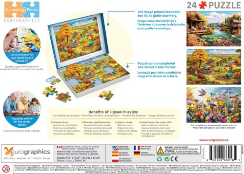 Puzzle tak nie sú iba zábavou, ale aj vhodnou pomôckou pre mentálny tréning, znižovanie stresu a zlepšenie koncentrácie. Vďaka veľkým dielikom sa jedná o ideálnu voľbu pre seniorov alebo pre osoby s demenciou alebo osoby s obmedzenou motorikou. Puzzle je balené v praktickej krabičke s odklápacím vekom. Obrázok skladáte priamo v krabičke. Vnútri veka obrázok motívu pre ľahkú orientáciu a zostavenie puzzle. Obrázok je od výrobcu dodávaný v zloženom stave. Ekologická výroba: recyklovaný kartón, tlač rastlinnými atramentmi.