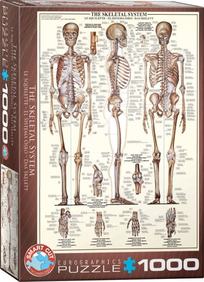 Puzzle pre všetkých, ktorých zaujíma anatómia ľudského tela. Puzzle zobrazuje a detailne popisuje ľudskú kostru. Popisky obrázkov sú v angličtine, francúzštine a španielčine.