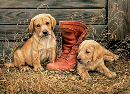 Kto by nemiloval šteniatka Obrázok z dielne umelkyne Rosemary Millette pôsobí realisticky až priam živo. Vyobrazené šteniatka nabádajú k pohladeniu a nútia človeka k úsmevu. Puzzle je balené v elegantnej štvorcovej krabičke a je vhodným darčekom nielen pre milovníkov psov. Raznice puzzle EUROGRAPHICS nekopíruje štandardnú mriežku, rohy a hrany dielikov nie sú vždy v jednej osi a dieliky majú neobvyklý tvar. Obtiažnosť puzzle je tak vyššia ako pri klasickej mriežkovej raznici, ktorú používajú poprední výrobcovia v Európe. Rozmer zloženého puzzle cca 67,63 x 48,89 cm
