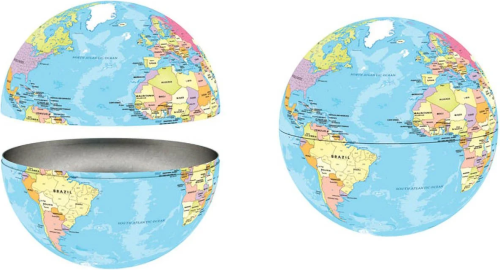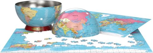 Puzzle v plechovej krabičke v tvare planéty Zem. Rozmer zloženého puzzle cca 48 x 33 cm
