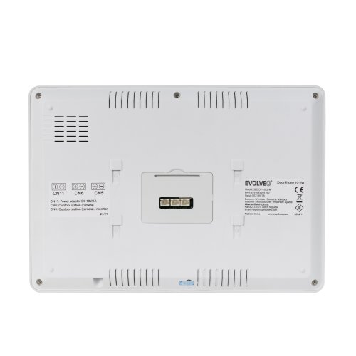 Parametre: Vnútorný monitor: Displej: 10,1" LCD dotykový displej Rozlíšenie: 1280 × 800 px Systém: Linux Pamäť: 32 GB Spôsob pripojenia: 2 vodiče bez polarity, max. priemer 0,75 mm² Funkcia: Video komunikácia, monitorovanie, ovládanie dverného zámku Spôsob komunikácie: Pamäť: Podpora pamäťových kariet, WiFi pripojenie Maximálna kapacita pamäte: 128 GB Napájanie: DC18V/1A Rozmer: 246 x 172 x 26 mm Spotreba energie: Pohotovostný režim: 1,5 W Pracovný režim: 10 W Pracovná teplota: -10 ° C až +60 ° C