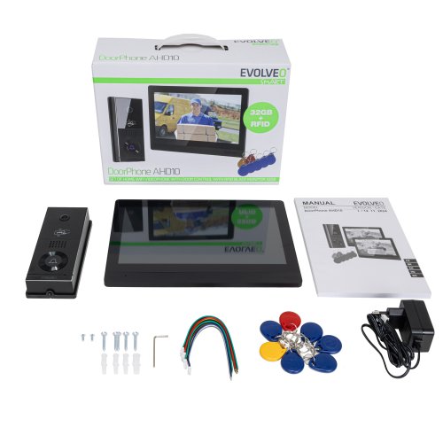 Domový znovok EVOLVEO DoorPhone AHD10, Sada domáceho WiFi videotelefónu s ovládaním dverí a RFID, čierny 10" monitor, 32GB