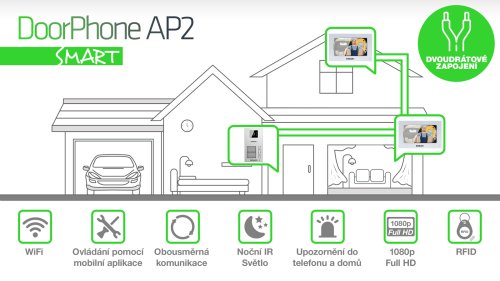 Videotelefón EVOLVEO AP2 je moderný videotelefón s Aplikáciou SMART LIFE pre vzdialenú správu, Full HD obrazom, dvojicou relátok pre ovládanie otvárania vstupnej bránky a vjazdovej brány. Vďaka jednoduchému zapojeniu pomocou iba dvoch vodičov, zvládne jeho inštaláciu naozaj každý. Navyše je monitor vybavený vnútornou 32GB pamäťou pre záznam udalostí pred kamerou, takže Vám už neutečie žiadny poštár s balíčkom.