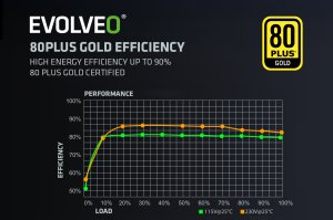 80 PLUS Gold , ktorá sľubuje až 92% účinnosť (pri bežnom 50% zaťažení). Minimálne straty energie a nízke zahrievanie idú pritom ruka v ruke s tichým chodom