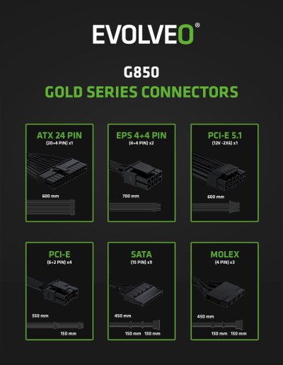 EVOLVEO G850-WH – herný PC zdroj, s ktorým má váš počítač dostatok sily na všetky výzvy dnešného digitálneho sveta. Tento