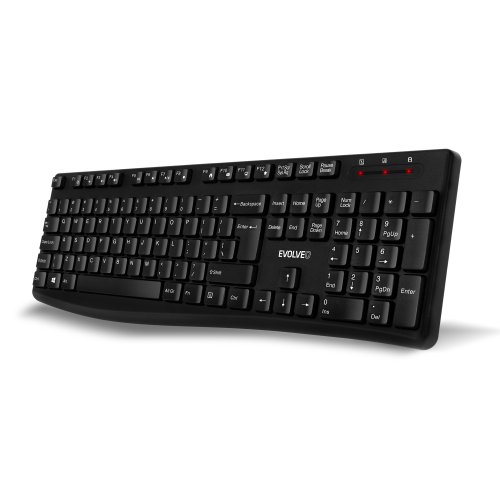 Klávesnica, ktorá je súčasťou setu EVOLVEO K1050 obsahuje 105 klasicky rozložených nízkoprofilových klávesov (s výškou 4,5 mm), vďaka ktorým je fungovanie počítača plne vo vašej réžii. Nechýba veľký kláves Enter, potlače s českými a slovenskými znakmi ani trojica praktických LED indikátorov (NumLock, CapsLock a nízky stav batérie). Super vychytávkou je aj 6 multimediálnych klávesov , s ktorými môžete jedným stlačením korigovať hlasitosť, pri počúvaní muziky preskočiť na ďalšiu pesničku alebo napríklad rýchlo načítať domovskú internetovú stránku. Voliteľná citlivosť, 4 tlačidlá aj pogumovanie