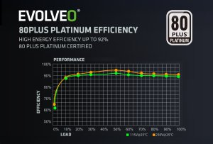 80 PLUS PLATINUM , ktorá sľubuje až 94% účinnosť (pri bežnom 50% zaťažení). Minimálne straty energie a nízke zahrievanie idú pritom ruka v ruke s tichým chodom