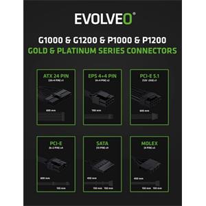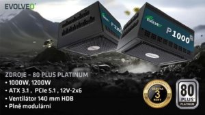 EVOLVEO P1200 zdroj 1200W, 80+ PLATINUM, ATX 3.1, aPFC, 140 mm ventilátor, 3 roky záruka, čierny