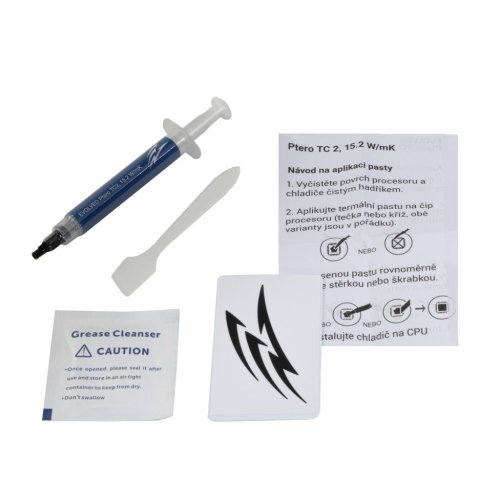 Kvalitná teplovodivá pasta s vynikajúcou vodivosťou 15,2 W/mK zaisťujúca perfektný odvod tepla od CPU alebo GPU. Vďaka tomu je pasta vhodná aj na pretaktovanie. Teplovodivá pasta je na báze silikónu, je teda elektricky nevodivá bez rizika skratu a bezpečná na použitie so všetkými typmi chladičov. Účinnosť sa časom neznižuje a je schopná si udržať vodivosť a prevádzkové vlastnosti až po dobu 8 rokov.