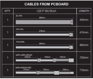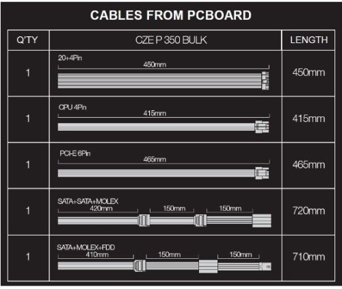 Špecifikácia • tichý 12cm vetrák s reguláciou otáčok • CE certifikácia, norma RoHs. • kabeláž v dĺžke 40 cm • 1x napájací kábel pre MB 20+4pin • 1x napájací kábel s 1x MOLEX konektorom, 1xSATA a 1x fd3 • 1x napájací kábel cpu 4pin • 1x napájací kábel s 2x S-ATA a 1x MOLEX konektor