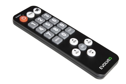EVOLVEO seniorský diaľkový ovládač pre Alpha T2 a Omega II Seniorský diaľkový ovládač má veľké písmená a je vybavený iba základnými funkciami. Jeho používanie je veľmi jednoduché a vďaka veľkým tlačidlám je vhodné hlavne pre seniorov. Je určený pre prístroje Alpha T2 a Omega II a umožňuje súčasné používanie s pôvodným diaľkovým ovládačom.