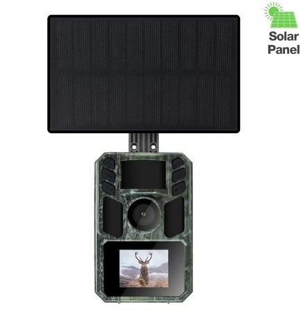 Parametre: Rozlíšenie fotografií: 2 / 4 / 8 / 16 / 20 / 24 / 32 / 36 / 42 / 48 Mpx Rozlíšenie videa: 720p / 1080p (Full HD) Video so zvukom: áno (voliteľne možno zapnúť alebo vypnúť) Formát videa: AVI Formát fotografií: JPG (min. Class 10) Objektív: f = 3,1 mm, uhol záberu 90 ° LCD displej: farebný 2 "displej Snímací prvok: 2 Mpx farebný CMOS IR prísvit: 4× IR LED 940 nm, dosah až 20 m PIR senzor: detekčný uhol 90 °, nastaviteľ doba: cca 0,6 sekundy Záznam pri pohybe: áno Časozberné fotografovanie a video: áno Dĺžka videa: nastaviteľná (3 s až 10 minút) Počet snímok pri aktivácii: až 5 fotografií Interval medzi aktiváciami: nastaviteľný (5 s - 60 min) Napájanie: vstavaná dobíjacia batéria 5000 mAh, 3 pohotovostného režimu: až 4 mesiace Až 1000 fotografií na jedno nabitie (prevádzka bez solárneho panelu) Solárny panel: výkon 1,6 W, 3 m USB-C kábel Napájací konektor: USB-C Jazyk menu: CZ,SK,EN,HU,RO,Si,HR Vodotesnosť: IP65 Prevádzková teplota: -10 95 % Rozmery fotopasce: 115 × 63 × 75 mm Hmotnosť: 0,320 kg