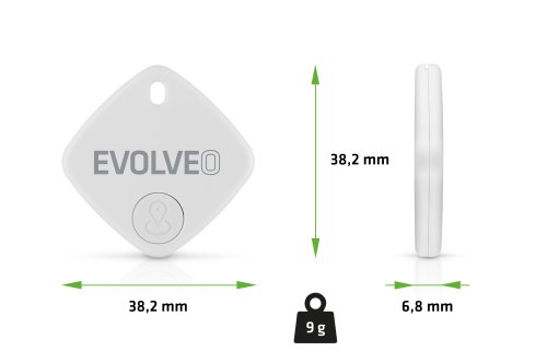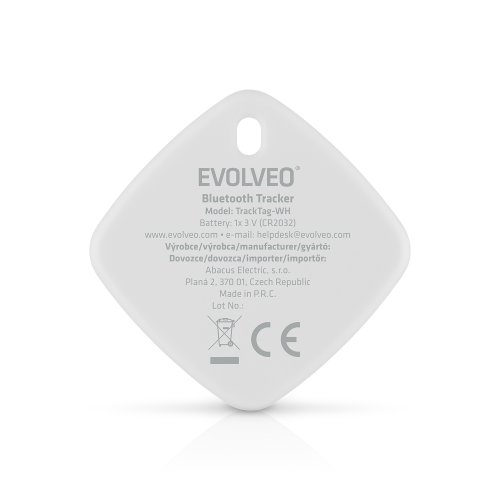 • EVOLVEO TrackTag, lokátor Bluetooth s Apple Find My, čierny (PartNo: TRACKTAG-BK) • EVOLVEO TrackTag, lokátor Bluetooth s Apple Find My, biely (PartNo: TRACKTAG-WH)